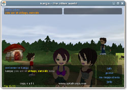 En kisa sozcuklerle, Karga 3b (uc boyutlu) bir sohbet sistemidir. Basit bir sanal gerceklik sistemi diye de adlandirilabilirKullanicilar, oyunlarda oldugu gibi 3b mekanlarda gezinebilirler, birbirlerini gorup konusabilirler, gorunuslerini degistirip cevreleriyle ve birbirleriyle (dansetmek, opusmek gibi) etkilesebilirlerUmuyoruz ki, gelecekte Kargada baska oyun ogeleri de (bulmacalar, tasit araclari, kullanilabilir nesneler, takim oyunlari gibi) olacakOnemli Not : Kargayi calistirmak icin java 5 veya ustu gerekir