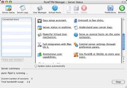 PureFTPd Manager MAC OS X icin yazilmis ucretsiz bir FTP istemcisidir. Tum sunucular ile sorunsuz bir sekilde calisir.Programin bu surumu ile birlikte:Kolay kurulum asistani, Sunucunun durumunu gercek zamanli olarak gorme,Sunucu ile ilgili detayli bir rapor elde etme, Mac OS X ile tam uyum,SSL korumali giris destegi,Klasor yetkilerini degistirebilme ozellikleri eklenmistir.