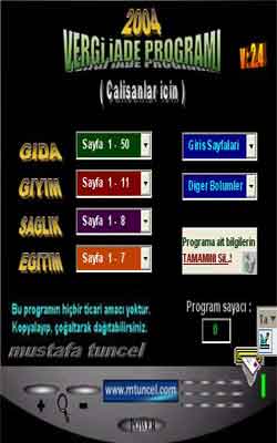 Calisan kisiler icin 2004 Yili yuzde oranlarina gore duzenlenmis guzel bir Vergi Iade programidir.Baslica Yenilikler:+Eski surume oranla daha hizli, pratik ve cok daha fonksiyonludur.Siz fis bilgilerinizi girin, o otomatik olarak duzenlesin,+Kullanimi son derece kolaylastirilmistir.+Tek tusla yazici ciktisi alabilirsiniz.