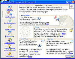 BrowserStar Internet Explorer icin kisisel bir web tarayicisidir. Internet Explorer'dan daha gelismistir. Bilinmeyen cerezleri, tarayici tarihini ve bellegini temzileyebilirsiniz. BrowserStar Sik Kullanilanlari denetlemenize, kaldirmaniza ve duzenlemenize yardim eder. Gizli IE ayarlarini bu programla degistirebilirsiniz. Program Windows baslangicinda dahili cerezleri otomatik olarak siler.