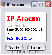 IP adresinizi gosteren guzel bir Mozilla Firefox eklenti. Ilk kuruldugunda sag alt kosede kirmizi harfler ile “IP” olarak gorunur. IP yazilarina tiklandiginda IP numaranizi gosteren menu cikar. LAN veya Proxy arkasinda olmaniz hic onemli degil. O anda internete cikmak icin aldiginiz resmi IP adresinizi menuden ogrenebiliyorsunuz. Istediginiz IP adresinizi de sag tiklayarak kopyalayabiliyorsunuz.