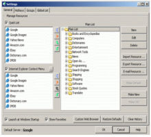 Bu program, internet uzerinde arama yapmanizi kolaylastiran kolay bir uygulama. Kullandiginiz browser uzerinde surukle-birak yontemi ile istediginiz bir kelimeyi secebilir ve hemen Google uzerinden internette arama yapabilirsiniz. Programin kisayol tusu ile binlerce kategoriye ulasmaniz mumkun.Ornegin bir kelimeyi internetten arayacaksiniz. Hemen o kelimeyi farenizle seciyorsunuz ve sizin belirleyeceginiz kisayol tusuna bastiginizda arama sayfasina baglaniyor. Programin kendi belleginde kayitli 10larca arama motoru var. Ancak siz dilerseniz yeni arama motorlari da kaydedebiliyorsunuz. Herhangi bir kisayola birden fazla arama motoruda ekleyebiliyorsunuz. Bu sayede arayacaginiz kelime daha cabuk sonuc verebiliyor.