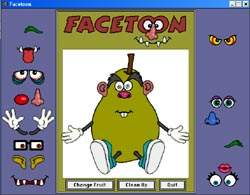 Karikatur meyvelere (elma,armut,portakal) kas,goz,agiz..vs. ekleyebileceginiz basit bir program.Cocuklar icin eglenceli olabilir.
